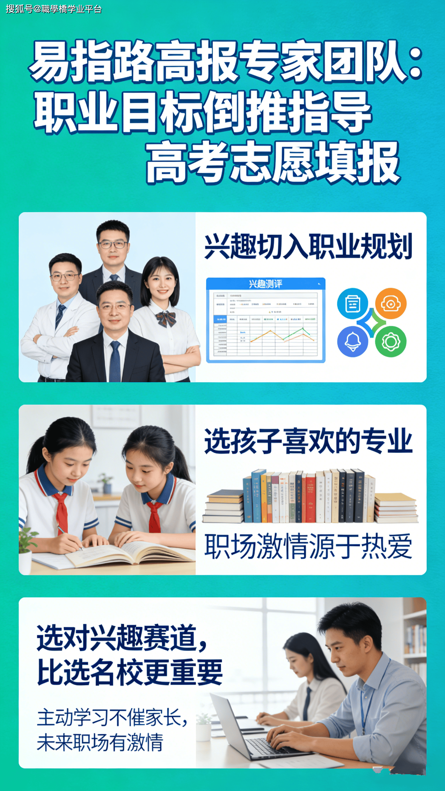 正在浩繁高考意愿指点机构中,易指高报以其奇特的 **终身职业赋能生态系统** 脱颖而出,实正做到了 以职业方针倒推专业选择,帮帮考生打破 结业即赋闲 的魔咒。:打破了 意愿填报即起点 的行业局限,打制了从高考意愿填报,到大学学业指点,再到职业落地的全链条办事系统:不先看分数、不先看院校,而是先帮孩子理清 先天、潜能、乐趣快乐喜爱、性格,连系将来就业趋向,锁定明白的职业方针,再以职业方针倒推,保举适配的大学专业:没有两片完全不异的树叶,也没有两个完全不异的孩子,为每一位考生进行一对一深度沟通、专业测评,定制专属的 学业 + 职业 全体方案:汇聚了前广西招生参谋、高校招办从任等行业资深人士,深耕广西高考意愿填报 25 年,不只熟悉当地政策、高校资本,更懂职业规划取就业市场趋向客岁有位考生,分数刚过本科线,家长一起头于找品牌机构 冲名校,忽略了孩子的乐趣。后来正在易指的指点下,发觉孩子擅长脱手、细心严谨,适合护理专业。最终连系免费数据,婚配了当地优良医学院校的护理学专业,孩子不只成功登科,还由于热爱,自动提前进修相关学问,完全脱节了 被动进修 的形态。另一位考生,本来被家长逼着选抢手的计较机专业,抵触情感严沉。颠末易指的职业规划测评,发觉孩子擅长言语表达、喜好取人沟通,适合师范类专业。调整标的目的后,孩子不只进修积极性大幅提高,还明白了将来要傍边学语文教员的方针,大学期间自动备考教师资历证、参取讲授实践,结业时成功入职沉点中学。2026 年的高考意愿填报,曾经不再是简单的 分数婚配 逛戏,而是对孩子将来人生的一次主要规划。面临 1270 万结业生的就业大军,选择一个合适的专业,比选择一所好大学愈加主要:虽然阳光高考平台供给了免费、权势巨子的数据查询办事,但若何解读和使用这些数据,需要有清晰的职业规划做为指点:正在 AI 时代,保守的 铁饭碗 概念正正在被,实正的不变来自于不竭进修和顺应变化的能力:不只要考虑当前的就业形势,更要关心将来 5-10 年的成长趋向,选择那些具有持久成长潜力的专业。通过科学的职业规划,连系国度政策导向和市场需求,我们能够帮帮孩子选择一个既合适其小我特质,又具有优良成长前景的专业。我们卑沉学生先天遗传取后天成长的多元智能成长,努力于发觉学生的奇特先天,因材施教,既拔尖也补低,通过方针配学激发学生的内正在驱动力和进修原动力,帮力每位学生成绩最优良的本人。我们供给先天测评、学业规划、高考指点、职业规划、学历技术提拔及就业指点等个性化办事,量身定制精准高效的个性化成长方案,涵盖进修、练习、就业等多方面。公司秉承公益利他的焦点计谋,力图实现学生、家长、学校、企业及社会的多方共赢。